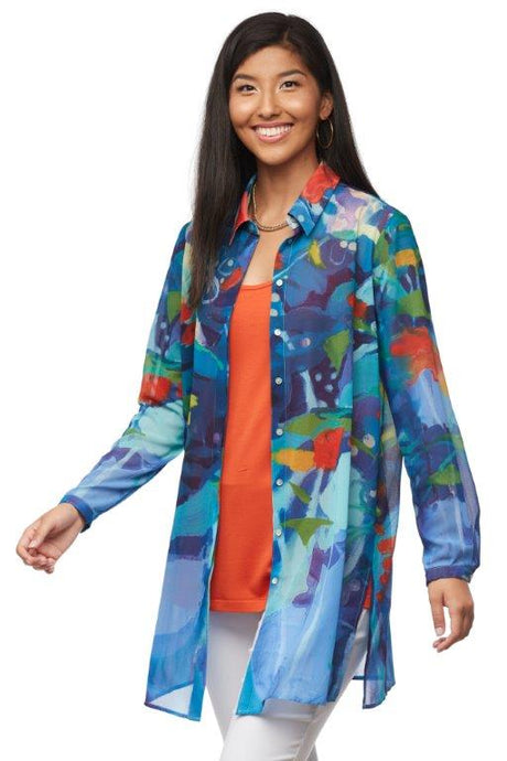 "Blue Crossings" reversible woven jacket
