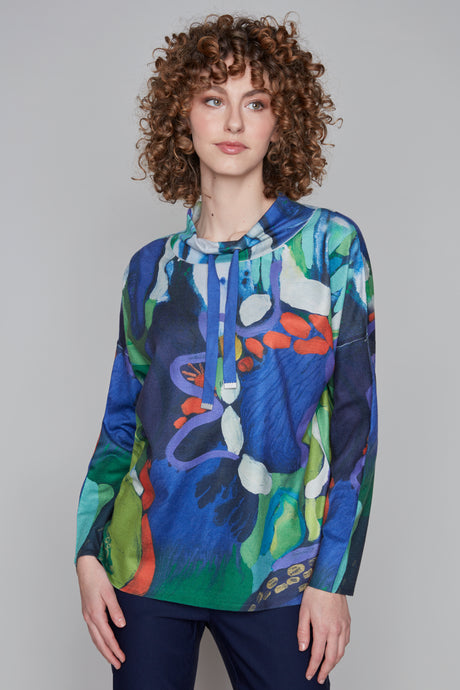 Breezy Black & Perwinkle Blue two-tone v-neck long sleeve top